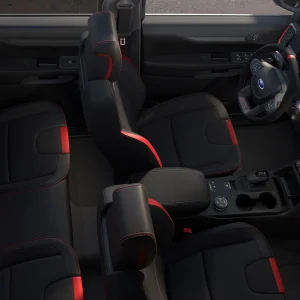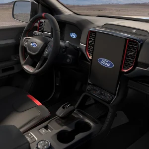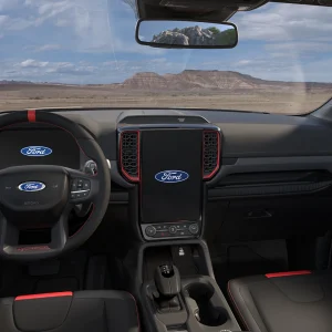 Nội thất với ghế lấy cảm hứng từ máy bay chiến đấu, vô-lăng bọc da cao cấp, tích hợp lẫy chuyển số bằng ma-giê. Chỉ khâu màu cam trang trí trên táp-lô, các chi tiết nội thất, trên ghế. Cụm đồng hồ kỹ thuật số với màn hình 12,4 inch, màn hình cảm ứng giải trí 12 inch tích hợp hệ thống SYNC 4A, hỗ trợ kết nối Apple CarPlay/Android không dây.